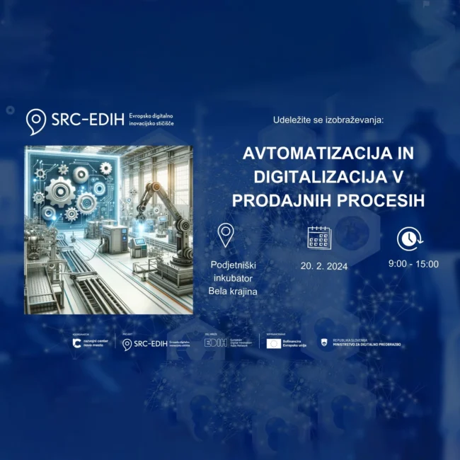 𝗔𝘃𝘁𝗼𝗺𝗮𝘁𝗶𝘇𝗮𝗰𝗶𝗷𝗮 𝗶𝗻 𝗱𝗶𝗴𝗶𝘁𝗮𝗹𝗶𝘇𝗮𝗰𝗶𝗷𝗮 𝘃 𝗽𝗿𝗼𝗱𝗮𝗷𝗻𝗶𝗵 𝗽𝗿𝗼𝗰𝗲𝘀𝗶𝗵 KDAJ: 20. februar 2024, od 9.00 do 15.00. LOKACIJA: Podjetniški inkubator Bela krajina (sejna soba), Belokranjska cesta 36, Črnomelj. PRIJAVA NA DOGODEK TUKAJ: PRIJAVA Prijavite se zdaj in izkoristite priložnost, da z digitalizacijo vaših procesov stopite korak naprej proti Industriji 4.0. Za dodatne informacije se obrnite na…